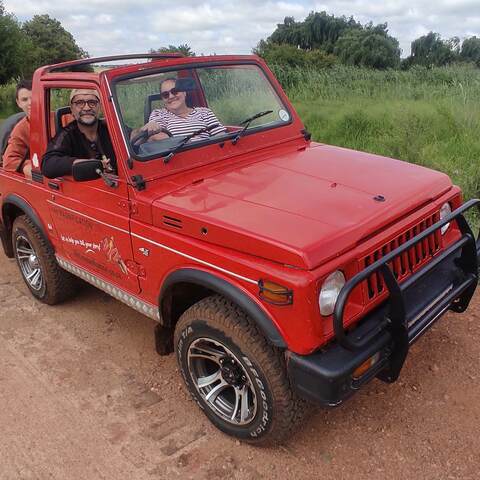 Imagine this: the wind whipping through your hair as you cruise through the African bush in a classic open-air Suzuki SJ410, the golden light glinting off zebra stripes and eland antlers.