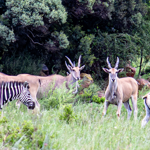 Blesbok blitz: Capture the playful leaps of these speedy antelopes, their white markings flashing against the emerald grass.